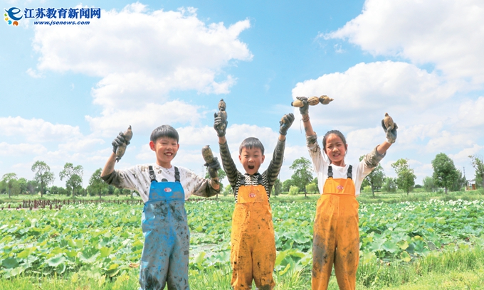 9月21日,東臺(tái)市實(shí)驗(yàn)小學(xué)在校外勞動(dòng)實(shí)踐基地開展田間課堂活動(dòng)。學(xué)生們身穿防水褲下塘采藕,體驗(yàn)藕農(nóng)勞動(dòng)的艱辛,感受荷塘豐收的喜悅。